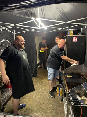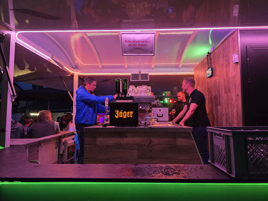 Kühlwagen. Neben einem breiten Angebot an Getränken, verkauften wir unseren FDUK-Burger, Veggieburger und XXL-Currywurst.