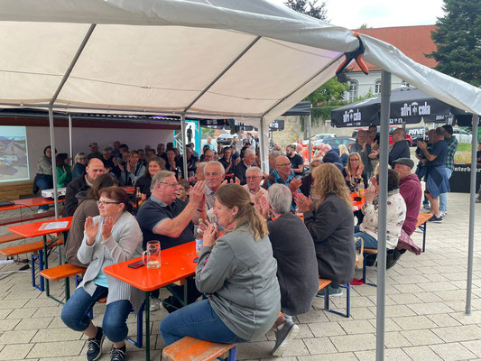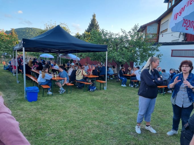 Pünktlich zum Vatertag verschwand der Regen und das Wetter bescherte uns einen recht warmen und sonnigen Festtag. Zeitweise waren zwischen 200 und 250 Gäste gleichzeitig auf dem Gelände. Auch viele Radfahrer und Wanderer legten einen Zwischenstopp bei uns ein und stärkten sich am reichhaltigen Essensangebot und der großen Getränkeauswahl. Insgesamt können wir feststellen: Es kamen nochmals deutlich mehr Gäste als im letzten Jahr, die Stimmung war durchweg ausgelassen und friedlich und unser Festteam war rundum zufrieden mit dem Ablauf der Veranstaltung. Der Unterböhringer Vatertagshock ist damit in den letzten Jahren zu einer festen Größe in unserem Festkalender geworden.