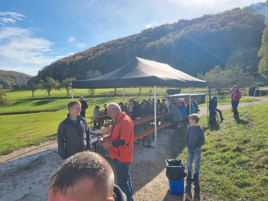 Bei angenehmem Wetter machten sich am 20.10. ca. 35 Wanderer auf den Weg von der Unterböhringer Ortsmitte zum Zielpunkt am Fränkel. Auf dem schön gelegenen Panoramaweg (auch als Grüß-Gott-Wegle bekannt) entlang dem Tennenberg und Burren, ging es bei tollem Ausblick voran. Am Fränkel warteten bereits unsere Mitglieder von FDUK & OGV mit Essen und Getränken und ausreichend Sitzgelegenheiten zum verweilen. Die Wandergruppe genoss dort in der geselligen Runde den restlichen Sonntag. Auch viele Spaziergänger und Wanderer machten bei uns halt und legten eine kurze Rast ein. Neben roter Wurst und Steakwecken waren auch die vielen Kuchen ein regelrechter Besuchermagnet. Die Vereinsmitglieder und auch die vielen Gäste waren voll des Lobes für unseren gemeinsamen Wandertag und die Organisation der gesamten Veranstaltung. Auch in diesem jahr werden wir den Erlös für eine neue Attraktion in unserem Ort einsetzen. Was genau wir uns gemeinsam überlegt haben, werden wir dann zu einem späteren Zeitpunkt präsentieren. Wir freuen uns bereits auf den nächsten Wandertag den wir wieder gemeinsam veranstalten werden.