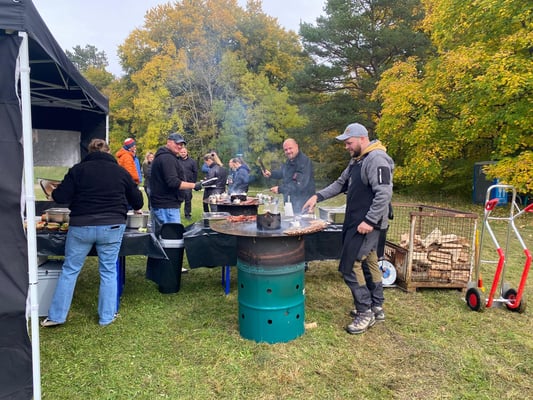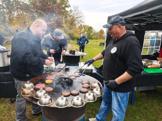 An der Wettereiche angekommen, hatten die Helferinnen und Helfer bereits für das leibliche Wohl gesorgt. Es gab leckere Burger und Würstle im Wecken, die großen Anklang fanden. Nach erster Stärkung rundeten selbstgebackene Kuchen und Kaffee den Tag perfekt ab.