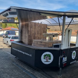 Mitte 2022 begannen die Arbeiten am ausgebranten und in großen Teilen zerstörten Ausschankwagen. In mühevoller Kleinstarbeit wurde dieser innerhalb von fast einem Jahr durch Mitglieder neu aufgebaut und wieder in Betrieb gesetzt. Zum vergrößern bitte Bild anklicken!