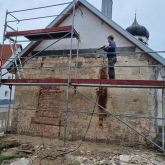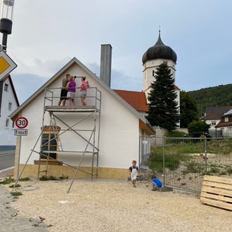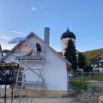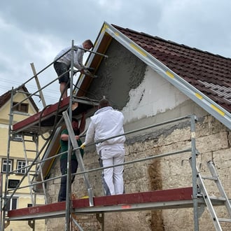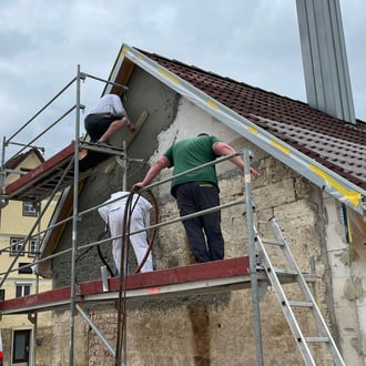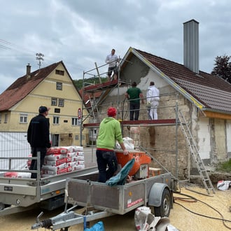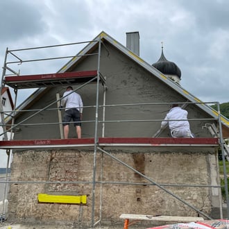 Vom 19.05. bis 04.06. zeigten einige unserer Vereinsmitglieder vollen Einsatz und verputzten die Fassade des Unterböhringer Backhaus.